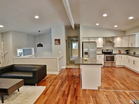 Great opportunity to own this home, located in a quite and secluded neighborhood. Featuring additional areas that could easily be converted into an office space, den or a bedroom with sliding door access to the backyard. Kitchen cabinets up to the ceiling, 2 real wood fireplaces, cathedral ceilings, double pane windows. New composite roof installed in entire house except a small section over garage. Blocks from downtown Edmonds and walking distance to public pool and parks.