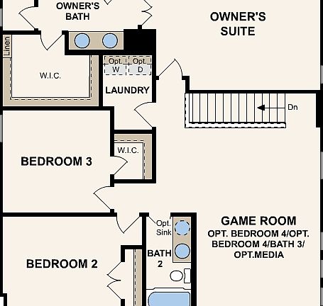 The Walnut at The Highlands boasts two floors of thoughtfully designed living space. On the main floor, you'll find an open-concept layout-anchored by a wide-open great room and an elegant kitchen with an adjacent dining area, a spacious center island and a walk-pantry. Additional main-floor highlights include a covered patio, a versatile flex room and a mudroom. Upstairs, there are two generous secondary bedrooms-one with a walk-in closet-plus an expansive game room and a convenient laundry room. Completing the upper level, a lavish owner's suite features a roomy walk-in closet and a private bath with dual vanities, a relaxing tub and a walk-in shower. Options may include: Extended kitchen island Media room or bedroom in lieu of game room
