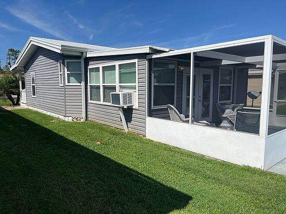 Experience comfort and convenience in this beautifully maintained 2-bedroom, 2-bathroom home, perfectly sized at 1000 sq ft plus 10 x 16 screen porch and nestled in a vibrant 55+ community. Enjoy an affordable lifestyle with a low lot rent of only $510 per month, providing significant value without sacrificing quality or comfort. Step inside to discover a welcoming interior featuring durable and stylish vinyl plank flooring throughout. The updated kitchen boasts modern appliances and finishes, making meal preparation a delight. Both bathrooms have been thoughtfully updated, adding a touch of elegance and modern functionality. This home is an entertainer's dream with a variety of outdoor living spaces. A large sunroom offers a bright and airy space to relax, regardless of the weather. Adjacent to it, the large, screened porch provides a perfect spot for enjoying the fresh air free from the elements. For those who love to bask in the sunshine, the expansive patio is an ideal setting. Additional features include a spacious driveway accommodating multiple vehicles, a durable metal roof ensuring longevity, and energy-efficient new tilt sash windows installed throughout. The air conditioning system was newly installed in 2016, ensuring comfort during the warmer months. Located in a friendly and secure community, this home not only offers a peaceful retreat but also proximity to community amenities and social activities tailored to active seniors.