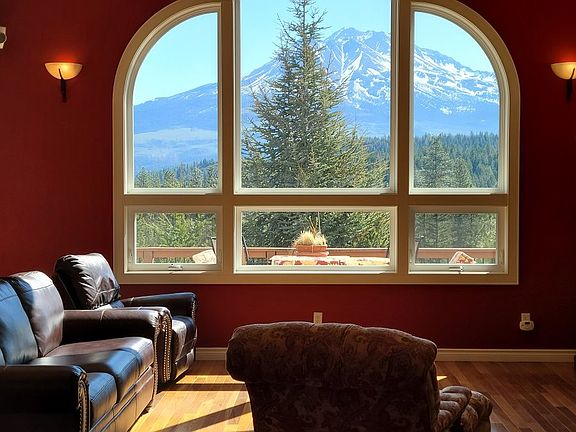 Gorgeous custom hilltop mansion in immaculate condition and with all furnishings included. Very few homes, very few, are this well appointed and so tastefully furnished: genuine Brazilian hardwood floors, engineered quartz countertops, radiant floor heating in master bath, recirculating hot water pumping, standby diesel-powered generator, two-zone heat pump system, ion water neutralizing treatment system, custom alder wood cabinets, huge cathedral ceilings in living area with complimenting floor-to-ceiling windows facing Mt. Shasta. All this at the hilltop-end of a private drive that backs onto 160 acres of Shasta National Forest to explore (and no neighbors to build on).