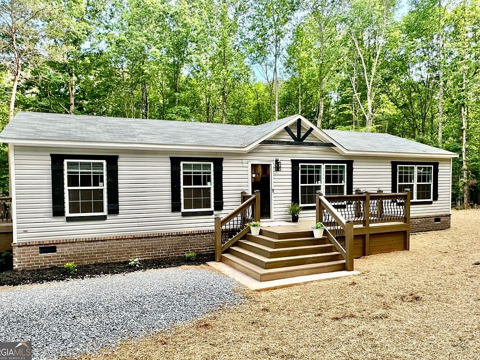 Another unique offering from Progressive Homes (PH); a premier land-home developer of Manufactured Homes in North Georgia- "Where Ordinary becomes Extraordinary. This sheet-rocked 3 bedroom, 2 bath home has an open floor plan and a large mud room. It includes an all-brick permanent foundation, a heat pump, OSB wrapped exterior, custom stained decks, upgraded insulation, energy efficient windows, stainless-steel appliances, a remote-controlled electric fireplace, a programmable thermostat, and a double sliding door off the dining area leading to a custom-built deck. No expense was spared to provide a truly unique enhanced low-cost quality living experience. All Progressive Homes lots are graded to maximum use of your land, capture the best views, and provide for adding a garage or workshop where possible. This home meets all FHA, VA, and Conventional Finance Standards and includes a 1-year house warranty. See the attached pictures to view the details that distinguish a Progressive Home from others. See Plat, home is located on tract 3. Tax records reflect the land only prior to being subdivided and homes added. Preferred lender credit is being offered -ask listing agent for details.