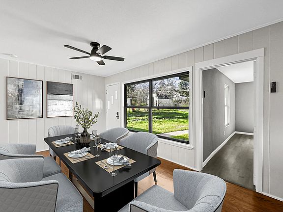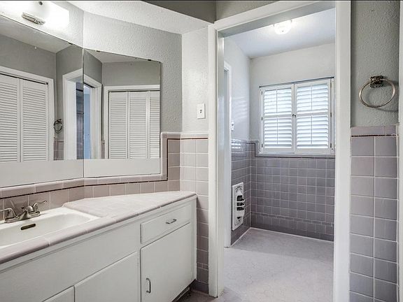 Freshly painted home with stainless steel appliances. The second photo is the new color combination for the exterior, Alabaster and Peppercorn. Come see this unique, Mid Century modern home nestled on top of a hill located in the heart of Cedar Crest. Views of the Dallas skyline from the kitchen window and backyard. This 4 bedroom, 2 bath home includes a huge living area with big windows for natural lighting, wood burning fireplace, original hardwood & vintage tile floors throughout the home. Huge lot with big backyard perfect for family gatherings and cookouts. Minutes away from Downtown Dallas, very accessible to bus lines, parks and Dart light rail, walking distance to Cedar Crest Golf Course and many stores and shops close by.