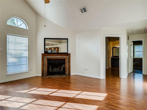 Don't miss this charming Wells Branch home - beautiful wood laminate flooring, vaulted ceilings, waterfall shower, walk-in closet, modern raised bowl sinks, freshly painted inside and out, with a private backyard and freshly stained deck. This house is move-in ready! Submit applications via Rently by 8pm Sunday September 20th.