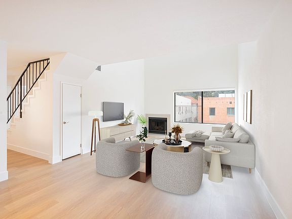 Step into a space defined by luxury flooring, a cozy fireplace, and custom tilework. The gourmet kitchen features a full suite of stainless steel appliances, perfect for home chefs. Enjoy the ultimate convenience of your in-unit washer and dryer and ample storage with large closets.
