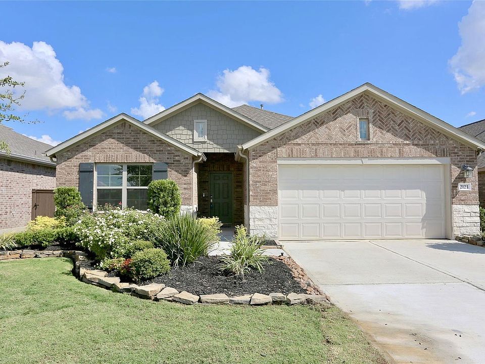 Stunning One-Story, 4-bedroom Home with covered porch, high ceilings, carpet and tile flooring, an open great room, and a covered patio. Open-concept living space includes the family room, dining area, and kitchen. This last one with beautiful dark brown cabinets and stainless steel appliances. The primary bedroom features big windows for great natural light, a walk-in closet, dual vanities, a tub, and a separate shower. Convenient laundry space inside the house. With direct access to the Grand Parkway and I-10, commuters from Southwinds and, an easy drive to Downtown Houston! Lots of popular restaurants, shops, and beaches at a really close distance. The community includes a pool, recreation center, playground, and picnic area. Zoned to the Goose Creek CISD, this is a must see you don't want to miss!!