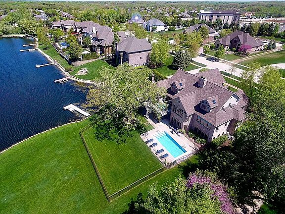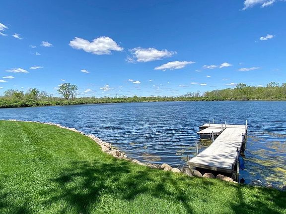 Once-in-a-lifetime opportunity to watch the most beautiful sunsets over the lake from the deck of this very special recently updated custom 5 bedroom 5 bath home on a lake near Chicago! Excellent school districts and multiple amenities nearby. Breathtaking views from almost every window! Dramatic two story foyer features a stunning custom staircase, inlaid hardwood flooring and three dormer windows! Incredible great room includes floor-to-ceiling stone fireplace, beamed cathedral ceiling and a wall of windows overlooking the lake! Amazing kitchen with hardwood flooring, an abundance of maple cabinets and granite countertops, huge island, skylights, and huge walk-in pantry! Eating area has a vaulted ceiling, brick fireplace slider to deck and incredible views! Much desired main level master bedroom offers a breathless view of the lake, 12x10 custom walk-in closet and bath suite with whirlpool, separate shower with steam, heated floors & double sink vanity! Additional bedroom on the main level has two closets and adjoining powder room. Huge main level laundry room! Enormous 2nd level bedroom suite features vaulted ceiling, three skylights, lake views, desk area, walk-in closet & attached newly updated full bath! Additional 2nd level bedroom that also includes three skylights, walk-in closet, attached full bath & great view of the lake! Full finished walk-out basement includes a huge rec room with fireplace, tons of windows & door to the patio, spacious exercise room, office space, large bedroom with view, full bathroom & more! Fabulous 1 acre lot overlooking a 13 acre lake with outstanding fishing, in-ground pool, boat dock for fishing or launching electric boats, kayaks, paddle boards, etc, professionally landscaped with sprinkler system, huge deck plus patio, (3) car side load garage! Huge storage space in the basement and walk-in attic. Full walk-out basement with large bedroom and a full bath allows opportunity for related living. Over 150K in 2022 upgrades include: new glass garage doors, hardwood flooring added to two additional rooms to complete hardwood throughout the main level, new wool carpeting installed throughout second level, remodeled upstairs bathroom, all new LED lights, new light fixtures and ceiling fans throughout, updated white trim, cabinets, and kitchen hardware, new kitchen backsplash, new dishwasher and microwave, extensive high-quality water filtration system installed, heating and AC added to garage, two new utility sinks installed, epoxy flooring in garage, extensively updated landscaping, full laundry room remodel, second washer and dryer in garage, and new paint throughout second level. Most of the indoor and outdoor furniture is new and is negotiable.