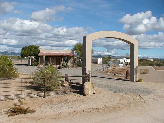 This stunning property has is all!! 2 1/2 acres includes Roping Arena with covered boxes, Mare Motel with 4 large stalls and tack room plus a guest quarters built into the barn, 2 large pens with shade plus 1 more large pen, Huge turn out pen , steer pen, and last but not least hay shed. Home is extremely amazing. Beautiful Granite countertops t/o. huge wood Vegas poles in kitchen and living room very cozy fireplace. PLUS Heated Pool and Spa. The property also has RV hookups and dump. It is a horse lovers delight !!
