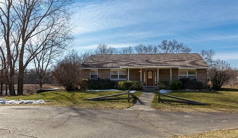 Stout brick ranch on 10 acres in a parklike setting with ponds forest and wetlands. Enter the spacious slate foyer with central great room with floor to ceiling fireplace just beyond. Formal dining currently used as a TV room and works great either way overlooking large deck and beautiful acreage beyond. Oak kitchen with large dining/nook area with side entrance with slate floor. Two full baths and 3 bedrooms round out the main floor and then on to the partially finished walkout basement with an additional bedroom, family room, full bath and laundry. Behind the house sits the large (70 x 80') pole barn, which is currently used to operate a seasonal boat storage business. Be sure to watch the narrated video tour!