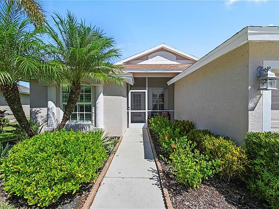 Welcome home to this open and inviting 3-bedroom, 2-bath pool home in Stoneybrook. With 1,650 sq ft of living space, this home was designed for both comfort and peace of mind. Spend your days relaxing by the sparkling saltwater pool, knowing your home is protected with impact windows and lanai shutters that keep everything secure. Inside, the open layout with vaulted ceilings feels bright and spacious, while tile floors throughout, upgraded baseboards, and fresh neutral paint create a modern, move-in-ready backdrop for your personal style. The kitchen offers stainless appliances, and the new washer and dryer make everyday living effortless. Major updates—including a new AC (2021), water heater (2023), and roof (2018)—mean years of worry-free ownership. Even the garage has been finished with tile for an extra touch of care. Furnishings are negotiable, but not included. Living in Stoneybrook, you’ll love the convenience of resort-style amenities right nearby, including the community pool, bocce ball, pickleball, basketball, playground and more. Plus the ability to walk your child to Pinewoods Elementary. It’s more than a house—it’s a lifestyle of comfort, security, and everyday ease.
