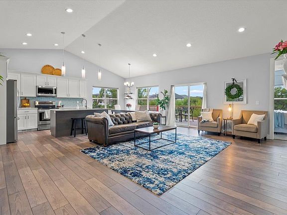 This beautiful ranch-style home, built in 2016, features contemporary design and high-quality finishes throughout. Located in the highly sought-after Prairie West neighborhood and near Aldrich Elementary, this home is in impeccable condition and ready for you to move in! The main level features a vaulted ceiling & the open floor plan is ideal for both entertaining and everyday living. The kitchen is equipped with quartz countertops, stainless steel appliances & Bertch cabinetry. Steps away from the kitchen is the mudroom with a coat closet, pantry closet, and laundry. On the other side of the kitchen is the dining space with access to the large cedar deck and a nice, tree-filled view. The living room features a stone gas fireplace, a centerpiece that adds warmth and character to the space. The primary suite includes a walk-in closest, attached bathroom with a tile shower and a dual vanity. There are two additional bedrooms and a full guest bathroom on the main level as well. Enjoy a fully finished lower-level, complete with another bedroom and full bathroom, a large family room with a gas stove fireplace, and storage space! Exterior perks include an attached 3 stall garage, lawn irrigation system, garden space and a great lot! Don't miss your chance at this great home, schedule a showing today!