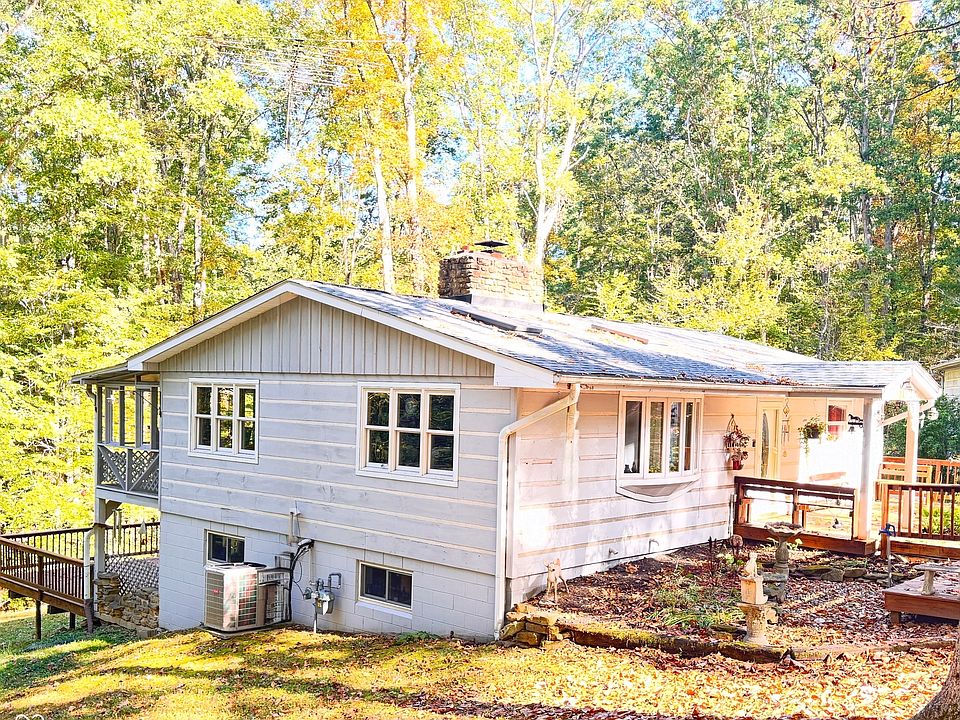 Finished basementCozy wood-burning fireplaceWooded lotLarge windowsExpansive decksBrand-new skylightsOpen layout