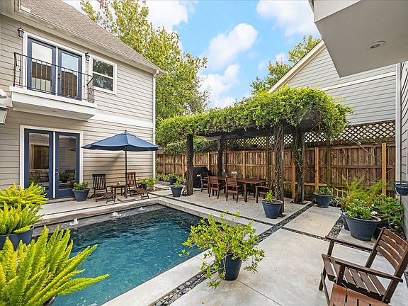 Picture-perfect & thoughtfully designed, this expansive 4,094 SF home offers 4 bedrooms, 3.5 baths & a pool. Centered around a saltwater cocktail pool & lush vine-covered pergola, the kitchen features a marble island with breakfast bar seating, double wall ovens, gas cooktop, & a butler’s pantry with wine fridge that opens to the dining room. The kitchen overlooks the living room w/ a fireplace & breakfast nook with built-in bench seating. The 1st floor also includes a flex room, a secondary bedroom that could serve as a home office, a full bath w/ outdoor access & a half bath. Upstairs, the primary suite is a true retreat w/ vaulted ceilings, fireplace, huge walk-in closet, & ensuite bath with dual shower heads & soaking tub. A game room w/ built-ins & wet bar offers flexibility. Two secondary bedrooms share a full bath, while a laundry room & study nook complete the upstairs layout. Within walking distance to local restaurants & parks, this home blends style, comfort, and location.