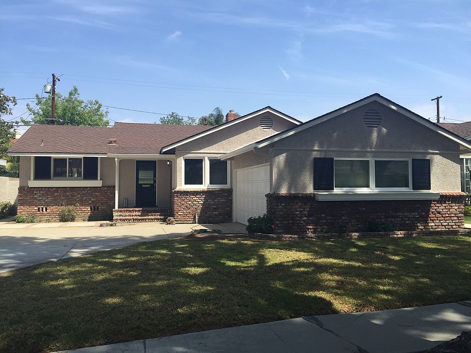 Welcome to 2124 Lees Avenue, a three bedroom and two bath home located in the heart of the Plaza area of Long Beach near El Dorado Park and El Dorado Golf. As you open the front door and step into a spacious open floor plan, you will notice the beautifully engineered wood flooring and recessed LED lighting that is found throughout. The living room has a flagstone fireplace for cozy evenings and a solid wall of windows with a French door leading out to a covered patio and garden area. The airy dining room is light and bright with even more windows and is steps away from the completely remodeled kitchen with glossy white cabinetry, Caesar stone countertops, a large breakfast bar and stainless appliances that will delight anyone who loves to cook. There are two bedrooms up front and, in the rear of the home, a very private master ensuite with an open beam ceiling, another flagstone fireplace, an attached bath and walk-in closet. Just off the master is an additional area ideal for use as a home office or nursery. Both bathrooms have been upgraded and completely remodeled with new tile, sink vanities, and glass enclosed step-in showers. The large covered patio and fully fenced lush garden has well established landscaping and is perfect for year-round entertaining. Additional amenities include forced A/C and heat, newer windows, upgraded plumbing and electrical. Good schools. The two-car garage in front with its large curved driveway offers extra space for parking.