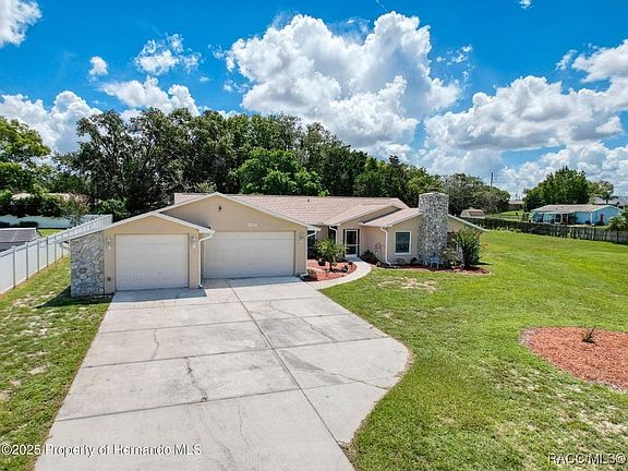 Welcome to your dream home at 2124 Little Peach Court in beautiful Spring Hill! This stunning pool home sits on over half an acre in a peaceful cul-de-sac with no HOA, offering the perfect blend of privacy and convenience. BRAND NEW ROOF with 50-year shingles, new gutters, and fresh exterior paint. The interior is just as impressive, with 2021 energy-efficient windows, ceramic tile, and brand-new laminate flooring throughout—no carpet here! Enjoy low electric bills thanks to a radiant barrier and extra insulation. The warm and inviting living and dining areas are separated by a charming wood beam, adding character to the open layout. A spacious 18x17 family room features another rustic wood beam and a gorgeous stone wood-burning fireplace (easily converts to gas), making it the perfect spot to relax or even set up a game room. The newly renovated kitchen is a chef's delight with granite countertops, tile backsplash, recessed lighting, newer stainless appliances, a breakfast bar, and plenty of brand-new cabinetry, including a pantry with pull-out drawers and a cozy breakfast nook. You will love the oversized bedrooms with lots of closet space, an elegant guest bath with tile tub/shower combo and a new vanity, and a spacious master bath with a walk-in shower and generous vanity space. The indoor laundry room offers additional cabinetry and leads to a 2-car garage plus a 35-ft boat garage, complete with an RV hookup and extended driveway for extra parking. Out back, enjoy Florida living at its finest on the huge 30-foot covered lanai (which is getting resurfaced by October 1), overlooking the newly screened sparkling pool and private backyard—ideal for entertaining year-round. Centrally located in one of the most desirable areas of Spring Hill, you're close to beaches, shopping, restaurants, and medical facilities. Prepare to be WOWED! Lender is offering the buyers help. Call for details.