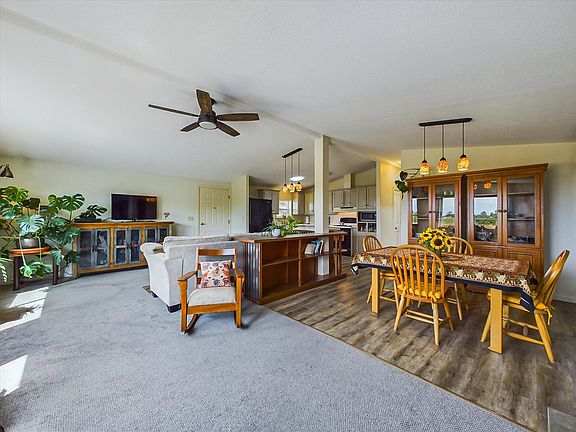 - Cathedral/Vault, Ceiling Fan(s), Large, Breakfast Bar, Tile Counters, Dining in Kitchen, Kitchen Island