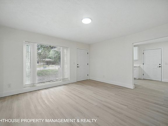 Step inside to find a spacious open living room with a beautiful large window as it's focal point; promotes plenty of natural sunlight. The living room is seamlessly connected to an additional den area or formal dining space. Off of the den is a large master bedroom with an attached, spacious bathroom with a walk-in shower. On the opposite side of the living room, you'll find a stylish, renovated kitchen with new cabinets, granite countertops, new hardware, fixtures, and stainless steel appliances; dishwasher, range oven, microwave, and a double door refrigerator with water and ice dispensers. Large kitchen window as it's focal point, eat-in kitchen area, and a side exterior door that leads to the covered front porch; attached outdoor laundry room with washer and dryer hookups. The bedrooms are generously sized, featuring ample closet space and ceiling fans for your comfort. The two guest bedrooms, and an additional office space or bonus room are conveniently located next to a stylishly renovated guest bathroom. Both bathrooms have been fully renovated with new subway tiling, vanities, hardware, appliances, and lighting. New LVP flooring, fresh interior, and exterior paint, light fixtures, ceiling and ceiling fans throughout the home. Thoughtful upgrades that elevate your daily routine! A private backyard is perfect for outdoor entertaining, giving you the ideal backdrop for gatherings with friends and family. Storage shed in backyard makes room for extra storage, and lawn equipment!