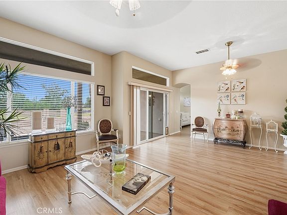 Welcome to one of the BEST 55 and older communities in the city of Hemet with a view! This home is truly remarkable. This community has everything you need. With over 2,100 sq ft, this gem offers has a Golf Course view designed by David and Harry Rainville. While you relax in your backyard with a cup of coffee or tea or entertain family and guests, you can enjoy the view. It features THREE bedrooms and THREE bathrooms. A beautiful open kitchen that leads to a dining area and a fireplace. A large open living room that leads to patio and backyard, and straight to the Golf Course. A spacious master bedroom with its own bathroom that offers a night view. Inside laundry room, central ac and heat. The community also offers a Clubhouse, restaurant and bar. Come by and take a look! =)