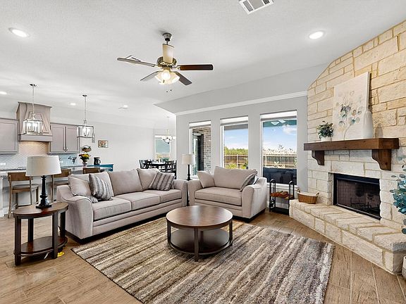 This meticulously maintained home combines several upgrades, exceptional cleanliness, and ample storage solutions for a move-in ready experience. The custom-built home office provides a perfect workspace with built-in features designed for functionality and style. The pristine landscaping surrounds the property beautifully, creating a serene outdoor environment that backs up to a private greenbelt, offering privacy and a natural backdrop.