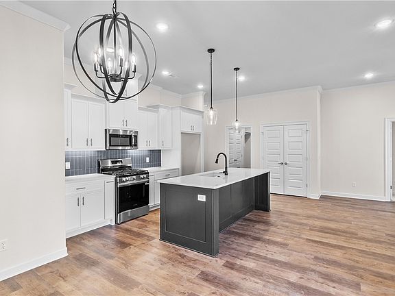 Step into the Stork Plan where LVP flooring runs through the living area, kitchen, and hallways, and the kitchen is a stand out feature of the home. Offering generous counter space, ample cabinetry, and a large walk-in pantry with built-in shelving. Stainless steel appliances bring a modern touch to the kitchen. A composite granite sink combines style with durability. The Stork Plan offers 4 spacious bedrooms, 2.5 bathrooms. The open-concept layout creates a seamless flow between the kitchen, living, and dining areas, making it perfect for everyday living and entertaining. The primary suite includes a private bath and walk-in closet for added comfort. Outside, enjoy both covered front and back patios—ideal for relaxing or hosting gatherings. Enjoy outdoor living with a ceiling fan and TV hookup on the back patio. This home combines style, comfort, and practicality for modern living. Fences, gutters, and blinds are included!
