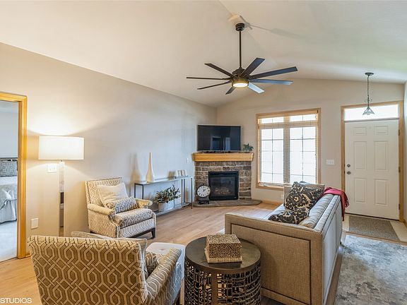 This immaculate zero-entry ranch townhome is loaded with updates and thoughtful details. It’s a great community where you can enjoy your manicured landscape and large patios, both covered and open. You’ll be greeted inside the front door with such a clean and soothing atmosphere including modern neutral paint, new LVP and carpet, and new light fixtures in several areas all done within the last year. The stone fireplace adds a warmth to the living space. The dining area is large with seating for a group or to add your favorite hutch. There is also a breakfast bar area for additional seating. Step into the kitchen featuring beautiful maple cabinets, granite countertops with a tile backsplash, stainless steel appliances including a kitchen aide refrigerator, and 2 panties! Just off the back garage entry is a separate laundry room with newer washer and dryer included. With granite counters added to each of the bathrooms, the primary suite features a huge linen closet, shower, and walk-in closet. The second bedroom also includes a walk in closet. Additional highlights include an oversized 2 car garage with floor mats for easy cleaning. Lots of additional storage space here as well as an unfinished attic space. New HVAC for peace of mind. Even the vents have been cleaned! New roof and gutters in 2022 according to a previous owner. You’re sure to fall in love with this one!