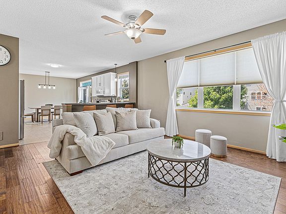 Exceptional 2 story home featuring a spacious, open concept floor plan perfect for hosting and entertaining. An inviting entry features soaring ceilings and new wood floors throughout. Recently updated kitchen with white cabinets, newer stainless steel appliances, and new fixtures. Fully fenced backyard, spacious and private with an oversized maintenance-free deck and irrigation. Boasting 4 bedrooms on one level with a dedicated primary suite with vaulted ceilings, large walk-in closet, and separate tub and shower with dual vanities. Build equity with an unfinished lower level, plumbed for a future bath, ready for your custom finishes and ideas. Conveniently located within minutes of local shopping centers, restaurants, Canterbury Park, Green Meadows Park, and more!