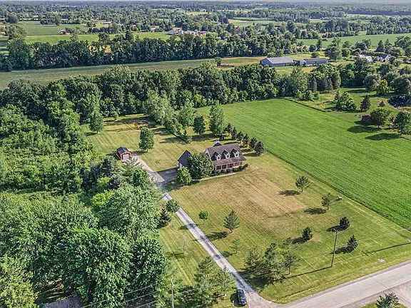 A truly must-see amazing family home and property meticulously maintained! almost 2900 of well-appointed and smartly designed sq. ft. on 4 superbly manicured and tree lined acres. This home boasts vaulted ceilings, 2 fireplaces, kitchen with brand new LG stainless appliances open to great room with gorgeous outdoor views. New LED recessed cans throughout entire house, brand new 50 gal power vent water heater, 3 1/2 car attached garage with battery back opener plus bonus room ready to be finished- plus a 14X24 Amish built outbuilding, Upper and lower living areas each with their own fireplaces offering that extra privacy factor. 4th bedroom on main level can be a den or 2nd Master suite. Basement with garage access and enormous fruit/wine cellar plus daylight and egress window and prepped for bath and laundry tub/sink & mostly drywalled and framed with metal studs plus new furnace with zoned heating & cooling. Natural gas, Xfinity high speed internet available all in the highly acclaimed Armada school district.