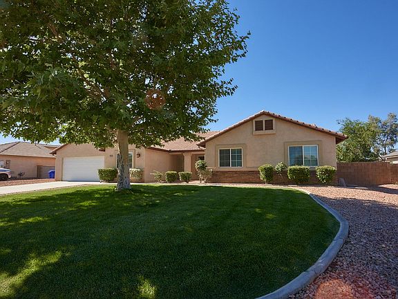 5 bedroom and 3 bath Home in the Vineyards! Great home for entertaining, step into the great room, living room, sitting area, and Kitchen are all open in the floor plan. There is a Fireplace in the living room, breakfast bar and center island in the kitchen, and Refrigerator stays! Ample counter space and bistro table area make this a cook's dream. Split floor plan includes Master and one room on one side and the balance of the bedrooms on the other with a laundry room with storage, additional closet was added in the office study for the 5th bedroom. Completely landscaped! Decomposed Granite in back with a custom Fire Pit for cozying up to a warm fire on the cool desert nights. No detail left undone. This one will not last!