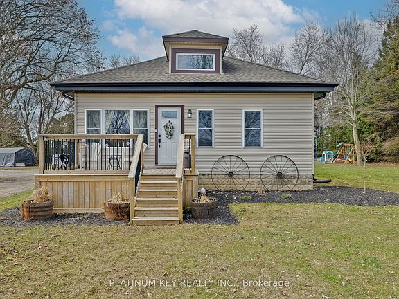 Discover your dream retreat in this beautifully renovated bungalow, renovations completed in 2024, nestled on a serene acre of treed land with new (2025) rear deck. This stunning home features three spacious bedrooms, including a primary suite with a generous walk-in closet, perfect for all your storage needs. The heart of the home is the a gorgeous kitchen, boasting ample cabinetry and a stylish island, ideal for culinary enthusiasts and entertaining guests. Enjoy cozy evenings in the large family and dining area, highlighted by a welcoming fireplace that adds warmth and charm. Separate main floor laundry with extra closet space is a bonus. In addition to the beautiful home, this property includes a remarkable 30 by 35 heated shop, built in 2024. This versatile space features high 12-foot ceilings, electricity, and an oversized 12 by 10 insulated garage door, making it perfect for hobbies, workshops, or additional storage. The shop also includes a fully finished 10 by 10 office, providing a quiet retreat for work or creative projects. This property gets even better with this spacious new deck (2025) overlooking your private-treed backyard. The basement offers a blank canvas, awaiting your creative finishing touches to transform it into your ideal space, whether it be a recreational area, home theater, or additional living quarters. With its perfect blend of comfort, functionality, and modern upgrades, this property is a rare find. Don't miss the opportunity to make this delightful bungalow and its impressive shop your forever home!