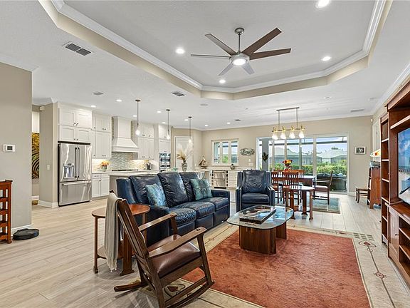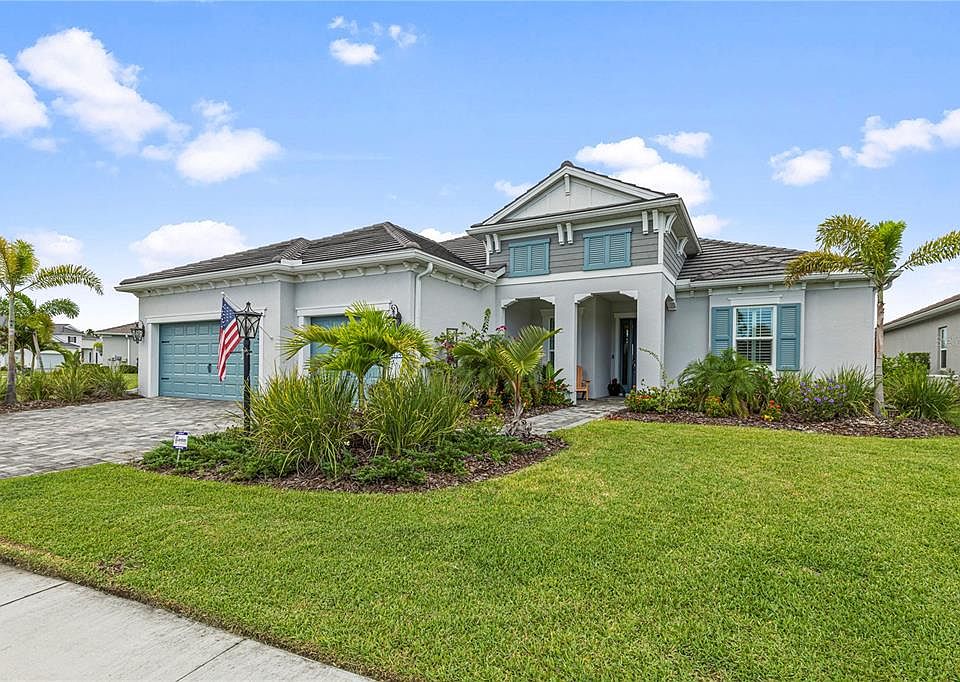 Welcome to just under 3,000 sq. ft. of refined living in this 4-bedroom plus flex room with a game room overlooking the pool and 3 full-bathroom home, oversized lot, built in 2023 and enhanced with upgrades for today’s lifestyle. Set within Grand Palm, recognized as one of the Top 10 Best Master-Planned Communities in the U.S., this residence perfectly balances style, function, and peace of mind. The open design is filled with natural light and elevated by crown molding, upgraded lighting, and statement chandeliers. The kitchen is equipped with all GE Smart appliances, including a GE Smart dishwasher, and a serving window for effortless entertaining. Hurricane-rated windows, electric shades, and Guardian protection with life alert add both comfort and security. Step outdoors to your private retreat: a spacious lanai with southern exposure, an 18’ x 34’ saltwater pool, and an 8’ x 8’ spa, all operated remotely through iAqua. There is also a direct entrance to the pool from the bonus room, adding convenience and flow for indoor-outdoor living. Exceptional landscaping, a large lot, and unobstructed views provide privacy and serenity. Additional highlights include a $20,000 Generac whole-house generator (natural gas), water filtration system, and a second gated entrance for exclusivity. As a Grand Palm resident, you’ll enjoy resort-style pools, a state-of-the-art fitness center, Adventure Lake with kayak launch, 28 miles of trails, pickleball, tennis, bocce, basketball, volleyball, multiple dog parks, playgrounds, and expansive green spaces. Homes with this combination of large lot, saltwater pool, spa, southern exposure, and extensive upgrades are rarely available. This is more than a home, it’s a lifestyle and a lasting investment in one of not just Sarasota County’s but the U.S.'s most desirable communities. Schedule your private showing today and step into the life you’ve been waiting for. Click the tour link for a 3D Virtual Tour!