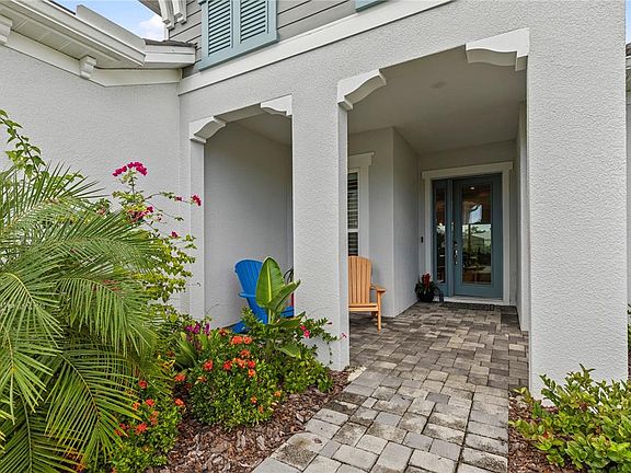 Welcome to just under 3,000 sq. ft. of refined living in this 4-bedroom plus flex room with a game room overlooking the pool and 3 full-bathroom home, oversized lot, built in 2023 and enhanced with upgrades for today’s lifestyle. Set within Grand Palm, recognized as one of the Top 10 Best Master-Planned Communities in the U.S., this residence perfectly balances style, function, and peace of mind. The open design is filled with natural light and elevated by crown molding, upgraded lighting, and statement chandeliers. The kitchen is equipped with all GE Smart appliances, including a GE Smart dishwasher, and a serving window for effortless entertaining. Hurricane-rated windows, electric shades, and Guardian protection with life alert add both comfort and security. Step outdoors to your private retreat: a spacious lanai with southern exposure, an 18’ x 34’ saltwater pool, and an 8’ x 8’ spa, all operated remotely through iAqua. There is also a direct entrance to the pool from the bonus room, adding convenience and flow for indoor-outdoor living. Exceptional landscaping, a large lot, and unobstructed views provide privacy and serenity. Additional highlights include a $20,000 Generac whole-house generator (natural gas), water filtration system, and a second gated entrance for exclusivity. As a Grand Palm resident, you’ll enjoy resort-style pools, a state-of-the-art fitness center, Adventure Lake with kayak launch, 28 miles of trails, pickleball, tennis, bocce, basketball, volleyball, multiple dog parks, playgrounds, and expansive green spaces. Homes with this combination of large lot, saltwater pool, spa, southern exposure, and extensive upgrades are rarely available. This is more than a home, it’s a lifestyle and a lasting investment in one of not just Sarasota County’s but the U.S.'s most desirable communities. Schedule your private showing today and step into the life you’ve been waiting for.