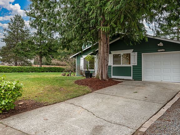 Must see this charming updated rambler in Lakewood Estates on spacious corner lot. Engineered hardwood floors, new carpet, paint, furnace, air conditioner, and plenty of outdoor living space with view of Mt. Rainier from the patio/deck featuring a retractable awning. Kitchen with granite countertop and stone tile efficiently serves outdoor area, kitchen dining, and living area. Enjoy the Pacific Northwest life with outdoor firepit, patio, gardening, and large open yard surrounded with laurel shrubs for fun and games. Lockable storage shed with electricity. Cul-de-sac neighborhood and easy access to Sawyer Village shops, food, Ristretto's coffee and wine, UW Medicine. Home features attached garage and plenty of parking.