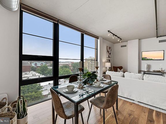 This bright and sunny corner unit has an amazing unobstructed view of Harrison Playground Park and eastern overlook of Washington DC. This 2-bedroom, 2-bathroom condo loft style industrial home has concrete ceilings, exposed duct work and a wall of windows that brings in a ton of light, and upgraded Honeycomb Shades by Hunter Douglas that includes the large floor to ceiling window covering with the remote controlled motorize shade. This specific unit at the Flats at Union Row has a fantastic floorplan with an optimal layout for living and entertaining. Each bedroom is strategically positioned at opposite ends of the condo. Each bedroom has access to a large bathroom and walk-in closet with custom designed and installed Elfa Closet System. The gourmet kitchen is open and has a large island, with granite counter tops, pendant lighting and stainless-steel appliances. It has installed upgraded walnut wood floors, high ceilings, laundry in the unit, tons of closets and more. The building amenities feature an 8th floor outdoor patio with grills, a 24-hr concierge and coffee in the lounge. And yes! It includes an oversized parking space conveniently located just across from the building elevator! The Yes! Organic Market and CVS are in the building on street level just out the front doors, with the YMCA, Meridian Hill Park, Bus Boys & Poets, Whole Foods, the U St metro, Trader Joe's, Maydan, Colombe, Le Diplomate and many other restaurants to choose from. This building is Pet and investor friendly! Union Row amenities include indoor & outdoor lounges, and fully staffed and accommodating front desk.