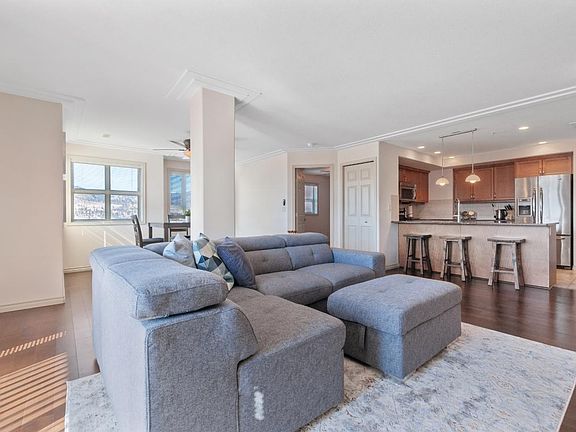 Ninth floor SE Corner unit in Athens Creek Towers! This condo has a fantastic open floor plan with 2 bedrooms and 2 bathrooms and 1283 SQFT. The well laid out kitchen has stainless steel appliances, tons of counter space and room for 4 stools at the bar. The great room design has the kitchen opening into the large living and dining room complete with a gas fireplace, access to the patio, and mountain views. The spacious master bedroom features a large walk in closet and an ensuite bathroom with a walk in shower and soaking tub. There is also a good sized guest bedroom and a full guest bathroom. Other features include; laminate floors throughout the living and dining rooms, a covered South facing deck, energy efficient hot water on demand, central AC and a quiet steel and concrete building. The unit comes with a storage locker & an underground parking space and is located just a walk across the street to shop at Cherry Lane Mall! 2023-04-23