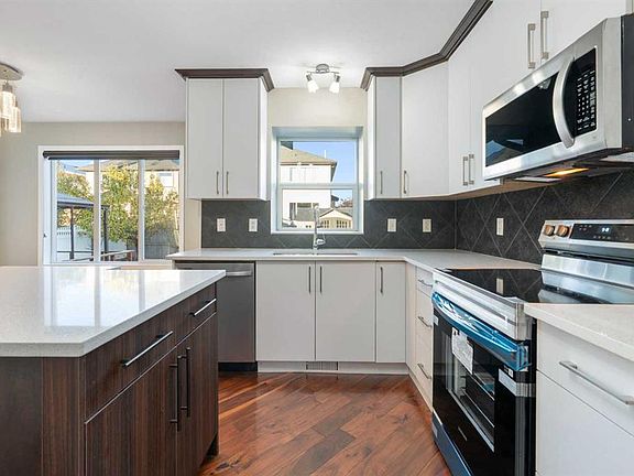 HIGHLIGHTS: 4 Bed | 4 Bath | 2,790 sq.ft Total | Finished Basement | Oversized Double Attached Garage | New Carpet | New Paint | New Kitchen Cabinets Doors & Countertops | New Dishwasher & Oven | A/C (2020) | LVP Flooring | West-Facing Fenced Backyard | Large Deck w/ Pergola | 5 Total Parking Spots. WRITEUP: This updated 2-storey home in Luxstone offers 2,790 sq.ft of total living space, including the finished basement. Built in 2007, the home features 4 bedrooms and 4 bathrooms with a practical, open-concept layout. The main floor includes a bright kitchen with new cabinets, countertops, dishwasher, and oven, along with plenty of counter space and storage. Fresh paint, new carpet, and LVP flooring give the home a clean, refreshed feel. Upstairs includes three bedrooms, while the basement adds additional living space, a fourth bedroom, and a full bathroom. The west-facing backyard is fully fenced and features a large deck with a pergola—ideal for enjoying sunny evenings and sunsets from the living room and kitchen. Completing the home is an oversized double attached garage and A/C installed in 2020. Immediate possession is available.