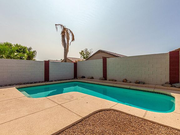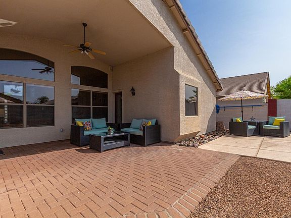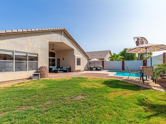 Everybody loves Finley Farms with its greenbelts, parks, walking & biking paths! And this sharp four bedroom home features an inviting backyard with a great pool and plenty of room for relaxing or entertaining. Inside you'll love the plank style flooring, granite counters, stainless steel appliances, updated fixtures, plantation blinds & vaulted ceilings. The owners en suite includes a separate shower & tub plus a handy exit to the back patio. Other notable 2019 upgrades include a new A/C and variable speed pool pump. The side yard includes a handy storage shed for toys or tools and plenty of garden area too. What can we say about this amazing location...near San Tan Village Shopping, great schools, bustling downtown Gilbert, parks & EZ access to freeways. Don't let it slip away! Check out the 3D walkthrough video in the photos tab.