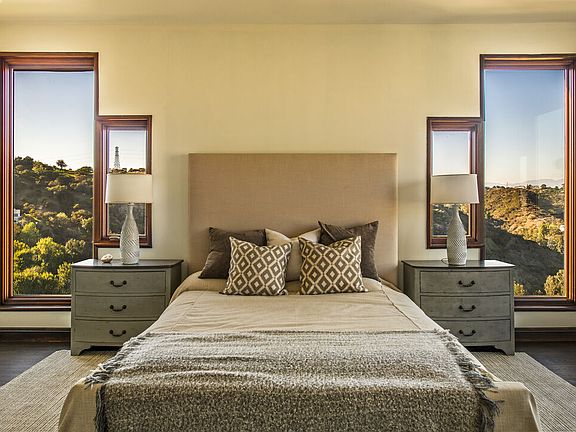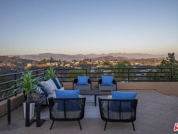 Sited in the heart of Laurel Canyon, this contemporary residence delivers panoramic views from nearly every angle. Designed to maximize its natural surroundings, wide custom windows and a 1,000-square-foot rooftop deck frame unobstructed 360-degree vistas of the mountains, canyon, city skyline, and glittering lights beyond. Set on a quiet street and spread across three combined lots totaling 13,564 square feet, the property offers rare scale, generous outdoor space, and the potential to add value, all within one of the Canyon's most coveted enclaves. Inside, the main living area is defined by soaring ceilings and one of the home's four wood-burning fireplaces. Walls of glass open to a large balcony, while a built-in bar supports seamless indoor/outdoor living and entertainment. The kitchen connects naturally to the living area and features an oversized island, ample storage, and stainless steel appliances, completing a thoughtful layout. There are three bedrooms, all en-suite and four bathrooms, each with high ceilings and custom windows. On the lower level, a generously-sized flex space, with its own entrance and full bath offers the ideal setup for a guest suite, office, or creative studio. Additional amenities include a two-car garage, ample street parking, extra storage, newer A/C system, and water filtration system. All of this, within the highly sought-after Wonderland Elementary School district and just moments to all that Sunset and Ventura Boulevards living have to offer.