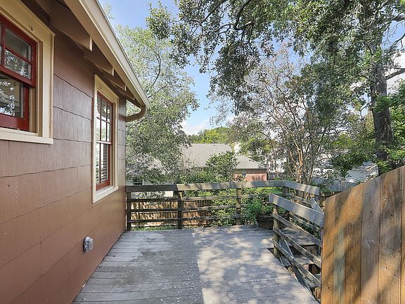 Apartment has pine floors throughout and bead board ceiling with crown molding. Remodeled kitchen with granite counter tops. Bathroom has claw-foot tub/shower combination, pedestal sink, chandelier. Landscaped private backyard and large upstairs deck in a wonderfully shady setting surrounded by mature live oaks. New exterior/interior paint. Private storage and new washer/dryer.