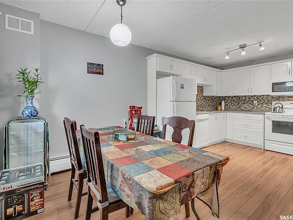 Welcome to this spacious 2-bedroom condo, located in a solid building complete with underground parking, in-suite laundry, and elevator access. As a bright corner unit, both generously sized bedrooms offer windows that fill the space with natural light throughout the day. The open-concept living and dining area is perfect for relaxing or entertaining, with patio doors leading to a large, private balcony. The bright white kitchen includes a built-in dishwasher (all appliances included), and you'll love the convenience of in-suite laundry (washer and dryer included). This unit comes with underground parking and a storage locker for added convenience. Located near the General Hospital, Wascana Lake, downtown, and a bus route to the University of Regina — you’ll love living close to it all! Whether you're a first-time buyer, a family, an investor, or simply looking to simplify your lifestyle, this is a fantastic opportunity. Contact your REALTOR® today to book your private showing!