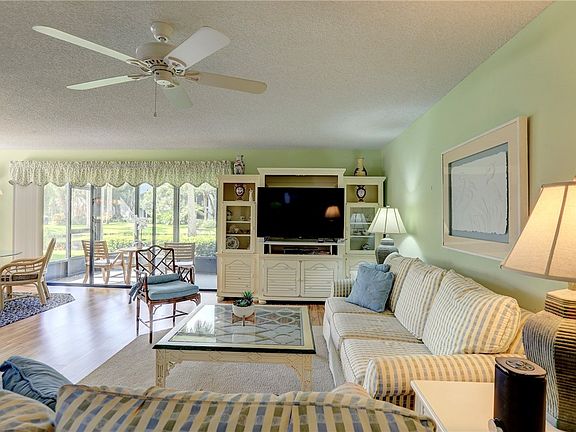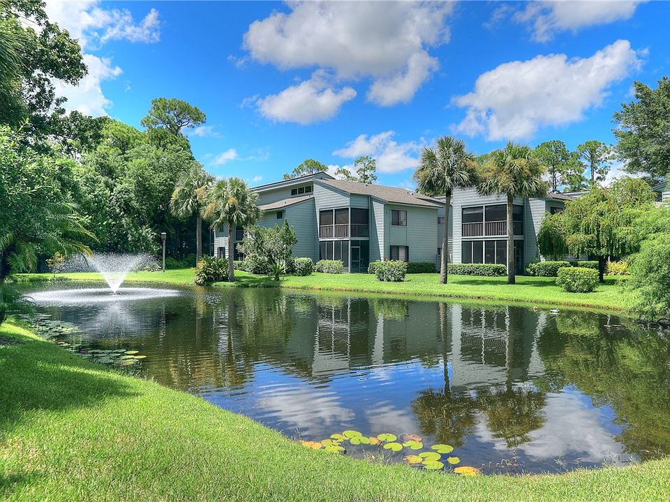 Beautifully Furnished Ground Floor Unit with Lake & Fountain Views! Move-in ready & perfectly positioned. Enjoy the tranquil sights & sounds of the lake & fountain from your screened porch, accessible through sliding glass doors from both the great room and the breakfast nook—perfect for morning coffee or evening relaxation. The private main suite features walk-in closet, ensuite bath, and its own covered patio with sliding door, creating a peaceful retreat. Don’t miss this opportunity for low-maintenance living with stunning water views, stylish furnishings, & exceptional indoor-outdoor flow.