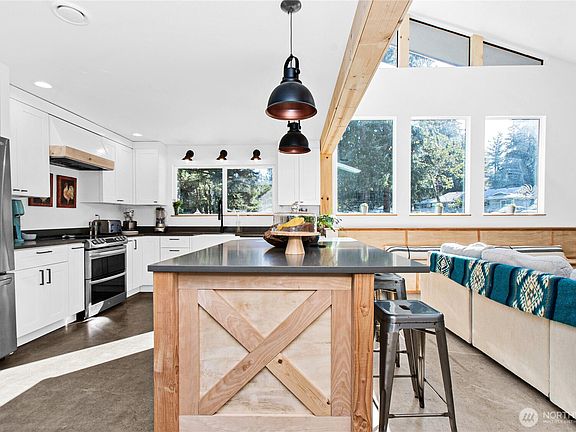 This fully remodeled 3-bed, 3.5-bath modern farmhouse sits on over 2 fenced acres offering the perfect blend of style, comfort & functionality. High ceilings, skylights, & large windows fill the home with light. Open-concept kitchen boasts a large island & flows seamlessly into the living room with a stunning fireplace. Enjoy a rec room with hot tub access, office, dining room, & large laundry room. Outdoor living is a dream with a partially covered back patio, firepit, and plenty of room for entertaining. The oversized 3-car garage includes an additional office, plus ample parking for guests, RVs, or toys. This rare gem offers modern comforts with plenty of room to breathe—don’t miss out! All while being close to I-5, JBLM, Lacey, & Yelm.