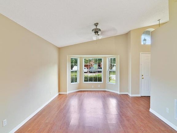 This spacious 3 BD 2 BA with a 2 car garage welcomes you home with an entranceway brightened by the natural light pouring in through the many large windows and reflecting off of the gorgeous mirrored wall in your spacious great room. Next, beautiful wood laminate leads you into an open concept kitchen complete with plenty of counter and cabinet space and a breakfast bar, overlooking a spacious family room which offers direct access to your spacious enclosed patio--an ideal place for grilling, outdoor entertaining, or just relaxing with family and friends. Beautiful ceramic tile and large windows adorn your spacious master suite complete with the privacy of an en suite bathroom with a single vanity and a garden tub, while two more bedrooms and a second full bathroom round out the interior features of this wonderful home. Conveniently located near shopping, dining and entertainment, this home is sure to please!