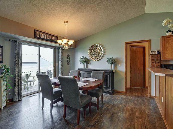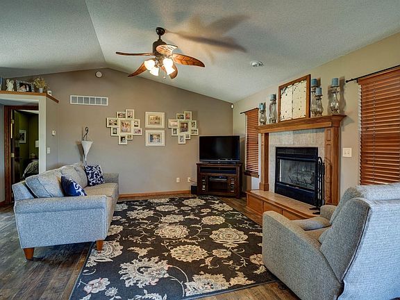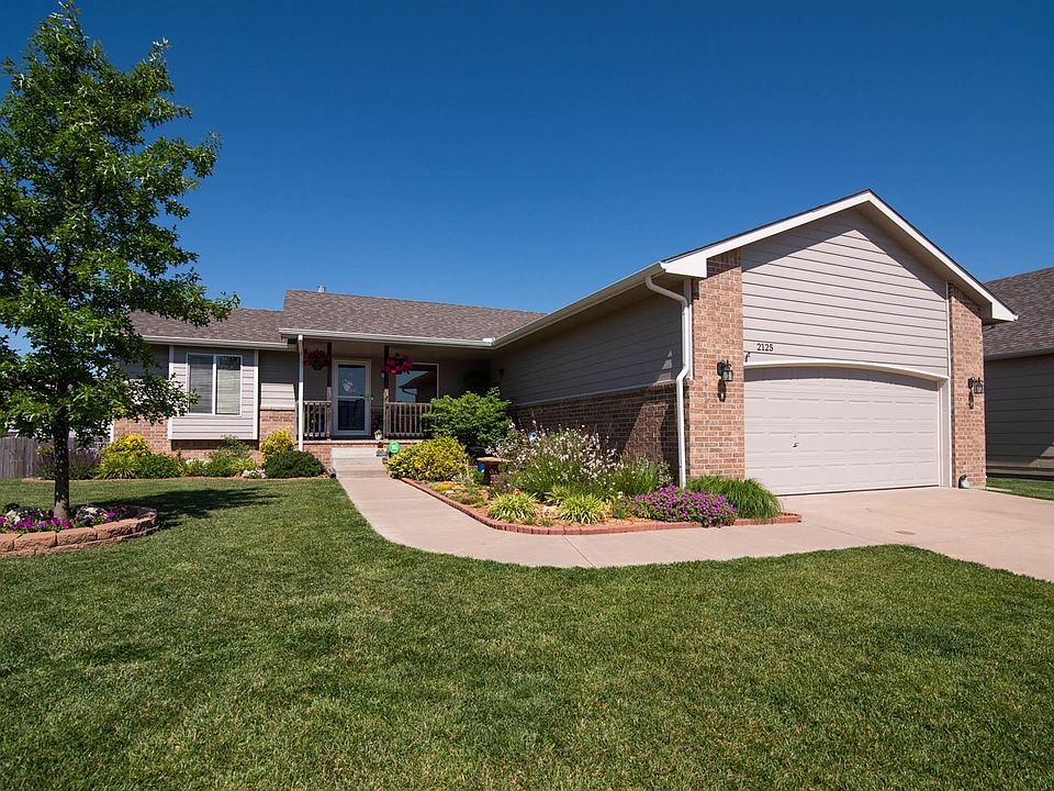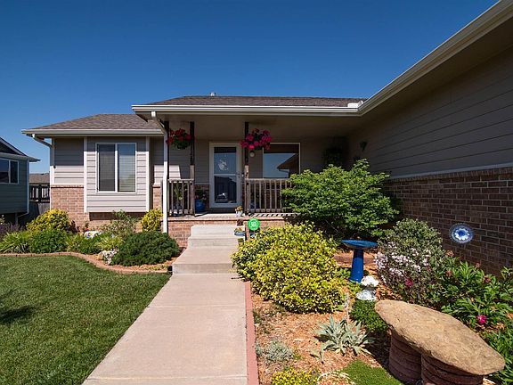 What a fantastic home in desired Goddard Schools! This 4 BR 3 BA 2 Car-garage Ranch has plenty of space for family and entertaining. The vaulted open concept living space features newer wood laminate flooring and a wood-burning fireplace with gas starter. The flooring continues in the kitchen and dining area. The kitchen offers lots of cabinet space, big peninsula with eating bar, stainless appliances that stay with the home plus plenty of room for a large dining table. Because of the split bedroom plan, the master suite is truly private, sporting a large walk-in closet, double sinks, tub/shower combo in the master bath. Two additional nice-sized bedrooms, hall bath and separate laundry room round out the main level. The finished view-out basement is great for extra living space or entertaining with easy to maintain stained concrete floors, a large family room & game room and an amazing custom wet bar offering Corian countertops, eating bar, built-ins & space for a wine fridge. Family room is wired for surround sound. You will also find the 4th bedroom and the 3rd Full Bath. Enjoy the beautiful Kansas sunsets and awesome lake views from the deck and covered patio with a fenced backyard and sprinkler system. The larger playset with the slide will stay with the home. Guttering, exterior paint, 30-year Heritage Roof were new in 2019.Dishwasher and water heater are new within the last year. Great curb appeal with inviting front porch and beautiful landscaping! Special taxes will pay out in 2022. Closing to be on August 3rd, 2022, with possession given to Buyer 48 hours after closing. If you have been searching for a move-in ready, well-cared-for ranch, this is the home for you!! Don't miss out on this one!! - Call to schedule your private showing today!