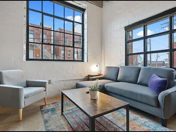 Experience modern city living in this bright industrial loft located at 2125 Superior Ave E in the heart of downtown Cleveland. This 1-bedroom unit features soaring ceilings, exposed ductwork, oversized factory-style windows, and polished floors throughout. The open layout includes a fully equipped kitchen with stainless steel appliances, generous cabinet space, and a sleek, modern bathroom with a stone vessel sink and walk-in shower.