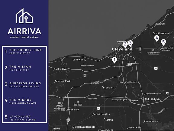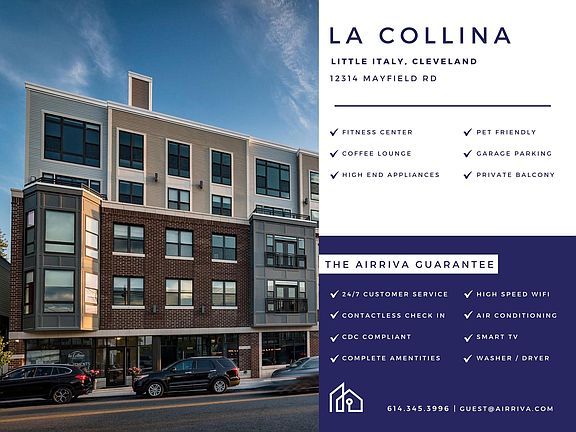 Airriva's apartments are designed for comfortable and easy living, and you have the flexibility to stay as long as you like. There's no long-term lease required, no security deposit or application fee, and you don't have the hassle of dealing with furniture. The flexibility of stay-as-long-as-you-like living means you can take it month by month, indefinitely, switch things up every season or start exploring a brand-new city in Airriva's network across Ohio (6 cities and counting). Seamlessly transfer to another Airriva apartment with just 14 days' notice. With Airriva you're getting more than a luxurious apartment. You're getting an upgraded lifestyle. With 24/7 support, accessible through the website, it's easy to schedule cleanings, repairs and other services. (Additional details: bundled utility package based on location; background check and proof of income necessary; smoke-free.) Unique historic features including Exposed brick walls, Large windows for natural light, wooden floors/ceilings. located by downtown Cleveland and easy travel by I-90 or the Cleveland Memorial Shore-way easy access to parking and RTA bus route. Dedicated dog park / fenced in area for dogs to run around- Dog wash station inside building. Central 24/7 courtyard providing greenery & fresher located adjacent to the cafe this provides a variety of gathering spaces unique to the building, this offers its own sense of community to the tenants Cafe at a convent location for both tenants and visitors Provides meeting space for friends/ family & work partners Quick on-the-go-options. Note: This is a general listing for every available apartment in your city. Please contact us for more details. Price varies according to the length of stay.