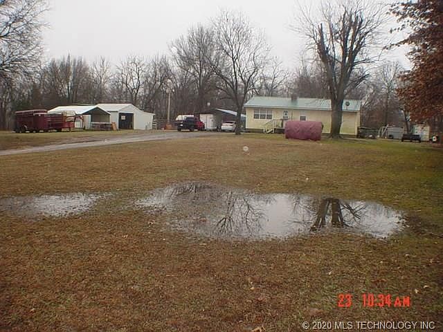 Country style home on 1.98 acres close to Pryor. 3 bedroom 1 bath with whirlpool tub. Central H&A, kitchen w/Dining room is open design. Fenced & has round pens & steel panels. Detached 1 car garage & 2 carports large for 2 cars each.