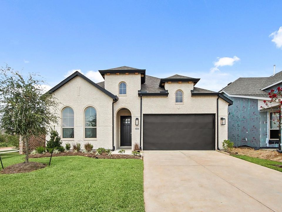 This home sits on a gorgeous corner lot with brick masonry fencing, no side or rear neighbors! It features a beautiful open concept living area, dining space and kitchen with tall ceilings, unbelievable 6 ft tall windows, large sliding glass doors leading out to an oversized covered patio. The study is perfectly tucked away providing a dedicated home office for working from home. A flex/entertainment room right off the main living area provides separation without distance! The primary suite includes a large walk-in closet, separate vanities, and a large shower. An oversized 3 car tandem garage with an 8' garage door height! Incredible livable features like a RHEEM tankless hot water heater, full sprinkler system, stainless steel Frigidaire appliances including French door refrigerator and full size washer, and dryer included!