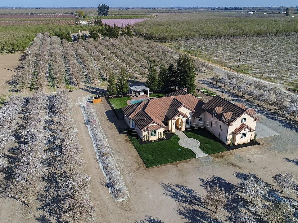 Everything you want in a country estate in Ripon School District! Quiet, private location down a long driveway. Custom home open floor plan, lots of natural light. ATTENTION FOODIES: You'll love the Viking professional cooktop + pot filler, Wolf oven, HUGE island w/vegetable sink & walk-in pantry. Downstairs oversize main master suite with outside access, gas fireplace, his/hers walk-in closets, oversize stall shower w/2 shower heads, plus roman circulating tub. Two additional downstairs bedrooms with Jack/Jill bath. Upstairs includes huge 2nd master or possible game room large enough for pool table & more. Laundry has loads of cabinets & closet for storage. 2400 sqft shop, tall enough for largest of RV's with three 14' roll up doors, plus office w/ bath, PLUS upstairs apartment with unfinished kitchen. 5 hp well (2018), drip irrigation for the 2 acres of Butte-Padre almonds (2011 planting), & 21 fruit & orange trees. Solar system w/8.5kw with micro inverters too! (owned, not leased). 2020-09-22