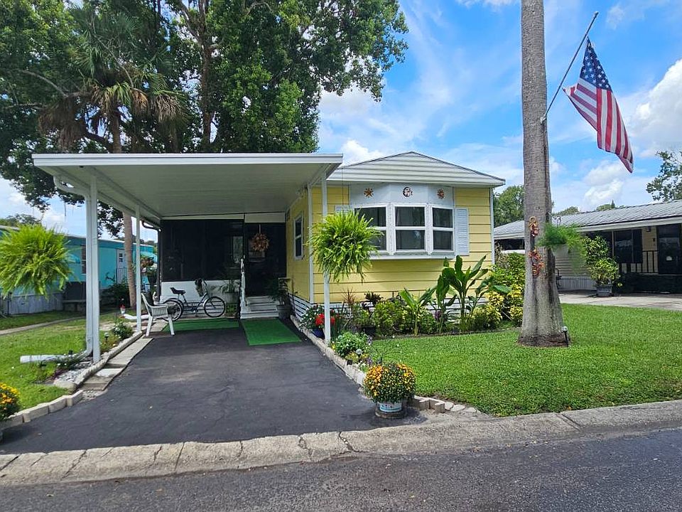 ***PRICE IMPROVEMENT***MOTIVATED SELLER***Beautiful well maintained water front home. This 2 bedroom 2 bath home is located in a 55+ community. Leased land with lot rent being 575.00. Lot rent includes water, sewer and trash. This home is being sold furnished with newer furniture thoughout. Some recent upgrades. Painted shutters and carport outside. Kitchen cabinet recently painted. The driveway has been resurfaced and some new skirting around the home. HP has a new condenser and ductwork has been replaced. Also, the roof has been resurfaced and insulated . Windows replaced with Anderson windows that tip out for easy cleaning. Enjoy sitting in the enclosed Lani or sit on the deck and enjoy the pond. A shed is in the back for your lawn equipment or storage. The community is located across the street from public transportation and close to shopping. This active community has many social activites to participate in. There is a clubhouse, laundry room, billards room and a fitness room. Enjoy the beautiful pool behind the clubhouse. Lot rent is lower than surrounding parks.
