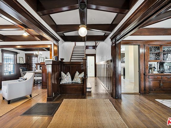 Built 1910, this Craftsman has been renovated back to its original state with pride and meticulous detail. Enter through the solid oak front door and be taken back in time to a period where woodwork was glamorous and abundant. The foyer leads you to a library and cocktail seating area, countered by the formal living room with the original stone fireplace and a formal dining area to enjoy dinners with family and friends. The rooms include notable features from the period such as built-in wood bookcases and seating, box beam ceilings and stained glass windows. The large kitchen has been upgraded with custom wood cabinets and stainless-steel appliances and is ready for your chefs imagination. Upstairs you will find the 4 bedrooms along with the en-suite 2 bathrooms, the balcony between the two front facing rooms, and a beautiful built in wood linen closet in the hall. The house has an abundant amount of fruit trees in the backyard, almost like your own farmers market. Being close to West Adams you will have access to amazing restaurants such as Delicious Pizza, Bee Taqueria, Johnnys Pastrami and Truffle Brothers Salumeria, come hungry because these places will not disappoint!