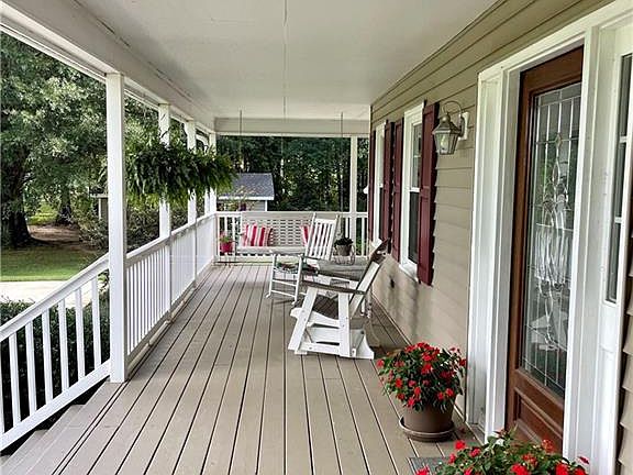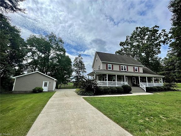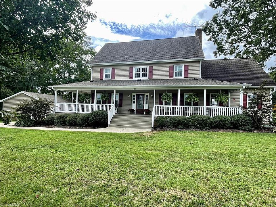 OAK RIDGE 3 Bedroom 3.5 bath home on over an acre! Enjoy the wrap around porch with wonderful views! Recently added spacious primary suite on main level, has recessed lighting, beautiful flooring, plus primary bath with tiled shower & separate tub. Living room has fireplace. Spacious updated kitchen with lots of cabinets and counter space, granite countertops, high arc faucet, recessed and under counter lighting. Updated baths. Second level bedroom can also serve as a 2nd primary. Office and Study each have closets. Beautifully landscaped. Enjoy the best of both worlds ~ Beautiful mature trees that provide shaded areas but lots of areas for sunshine too! Spacious deck and fenced in back yard. 2 car detached garage.